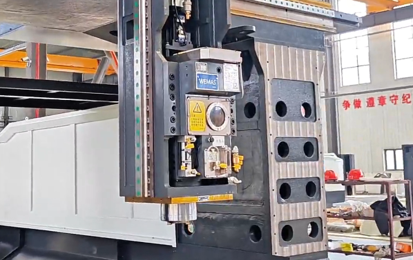 58吨整机刚性:床身、立柱等关键结构采用高强度铸铁材质,经时效处理消除内应力,梯形横梁与双立柱门式框架设计强化整体刚性。58吨的整机重量为重型切削提供坚实支撑,有效抑制加工振动,确保厚壁工件、大型模具等重负载加工场景的表面质量。
